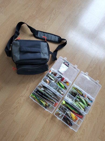 1 torba wędkarska z wyposażeniem do spiningu