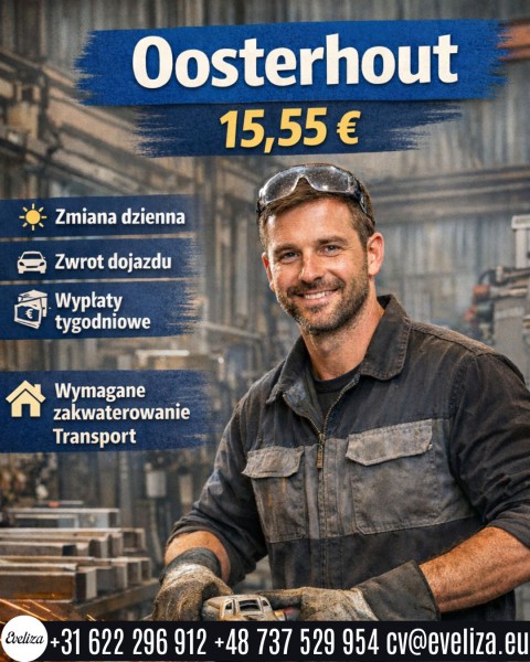 • Zmiana dzienna 7:00 - 15:45 poniedziałek - czwartek 7:00 - 14:45 piątek, możliwa praca w soboty.