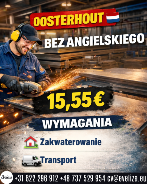• Zmiana dzienna 7:00 - 15:45 poniedziałek - czwartek 7:00 - 14:45 piątek, możliwa praca w soboty.