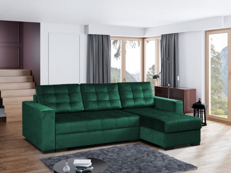 Nowoczesny narożnik LENTO z funkcją spania, oraz pojemnikiem na pościel