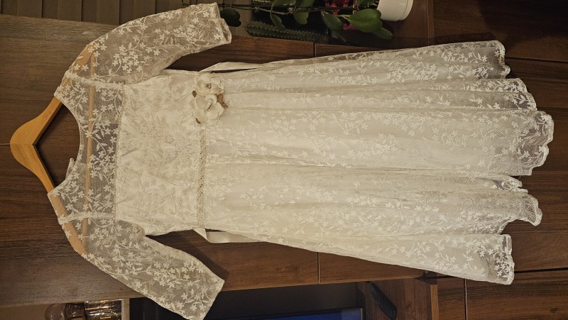 Sprzedam sukienke pokomunijna rozmiar z metki to 164 ale na mniejszy rozmiar tez bedzie lezec dobrze i buty w rozmiarze 36
