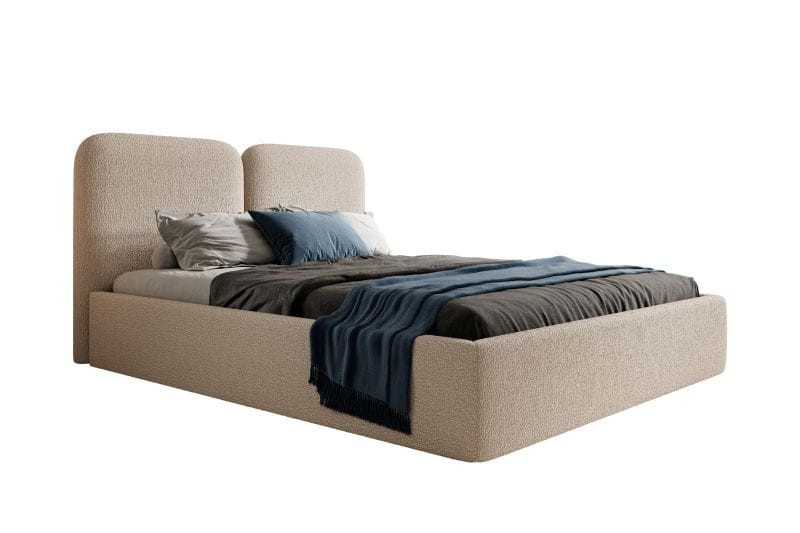 Łóżko prezentuje się zadziwiająco lekko i elegancko. Aksamitne, delikatne w dotyku obicie dodaje meblowi stylu oraz sprawia, że łóżko doskonale komponuje się praktycznie z każdą kolorystyką pokoju. Całość dopełnia nieduże i miękkie wezgłowie przypominające poduszki, dzięki czemu łóżko z wspaniale sprawdza się podczas wieczornego oglądania filmów czy czytania książki.