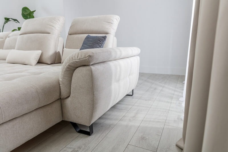 W tym sezonie w salonie rządzą jasne kolory. Beż, krem, szarość to najmodniejsze barwy sof. Giovani mini wyróżnia się optyczną lekkością. Świetnie sprawdzi się w małym salonie, polubi też wielobarwne dodatki. Giovani mini urzeka harmonią. Nie razi i nie przytłacza pomieszczenia, natomiast sprawia, że staje się przytulne, czyste i zachęca do odpoczynku. Idealnie odnajdzie się w mniejszych kawalerkach, gdzie salon wieczorową porą staje się sypialnią. Jednym ruchem z narożnika stworzysz pełnowymiarowe łóżko sypialniane. Pościel zaś wyjmiesz z pojemnika, który mieści się w dole kanapy. Funkcjonalny element narożnika będzie zawsze pod ręką.