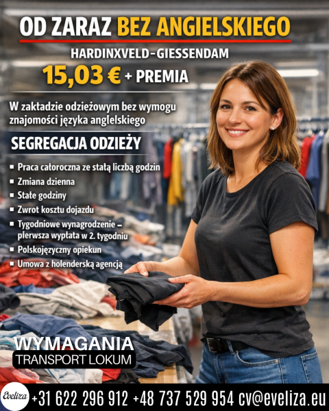 Hardinxveld-Giessendam 15,03 + tygodniowa premia BEZ ANGIELSKIEGO