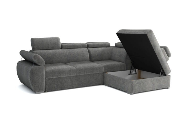 Narożnik z opcją spania to praktyczne rozwiązanie, które zapewni dodatkowe miejsce noclegowe. Możesz wykorzystać go, jako łóżko dla siebie lub dodatkowe miejsce noclegowe dla gości. Aby zapewnić Ci zarówno wygodę użytkowania, jak i łatwość w utrzymaniu czystości ten mebel wypoczynkowy możesz zamówić w swoim ulubionym kolorze w tkaninie plamoodpornej i zmywalnej lub standardowej.