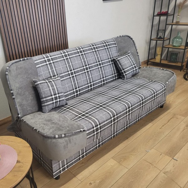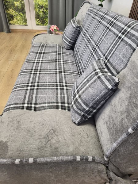 Wersalka rozkładana FILIP została wykończona miękką tkaniną w kratę.