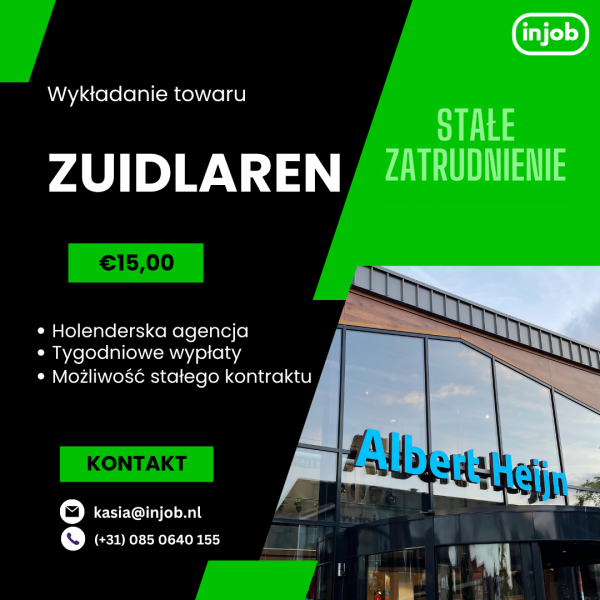 Dla naszego klienta – sieci supermarketów Albert Heijn – poszukujemy osób do pracy przy wykładaniu towaru. Praca polega na uzupełnianiu półek zgodnie z obowiązującymi standardami sklepu, dbaniu o ekspozycję produktów i utrzymaniu porządku w przestrzeni sklepowej.