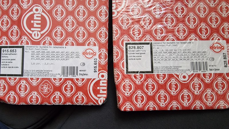 Oryginalne uszczelki firmy ERLING. Fabrycznie zapakowane. Głowica 828.807 i pokrywa 915.653 Do wielu modeli Audi, VW, Skody i Seata od 1.6 do 2.0 litrów.