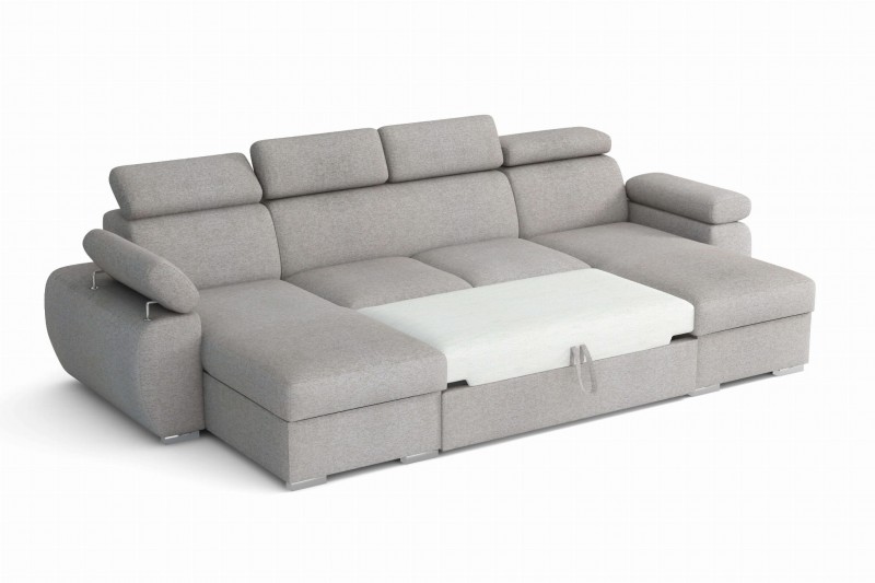 Model PLAZA posiada funkcje spania i pojemnik na pościel, co czyni go idealnym rozwiązaniem, jeśli potrzebujemy dodatkowego miejsca do spania, czy przechowywania pościeli. Komfort wypoczynku zapewniają regulowane zagłówki, które pozwalają na idealne dopasowanie do indywidualnych potrzeb.