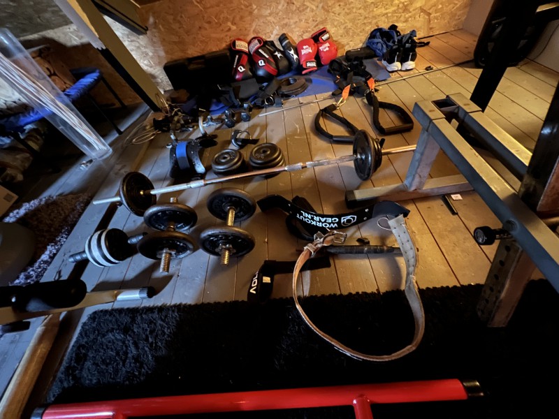 Witam sprzedam siłownię ławeczka płaska regulowana ze stojakami druga ławeczka regulowana ławeczka skos w dół stojak rozkładany do podciągania i do dipów , orbitrek, obciążenia około 100 kg , sztanga płaska skręcana kółeczko do brzuszków , worek bokserski nadmuchiwany.