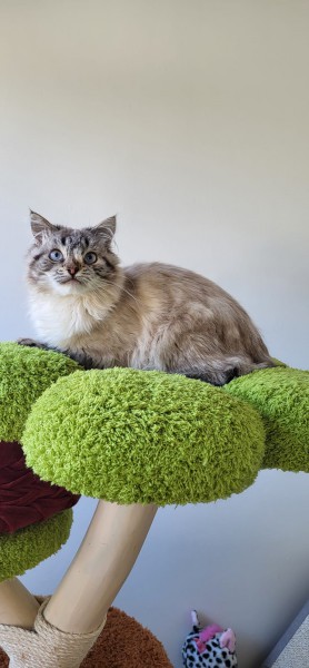 Korzysta z kuwety oraz drapaka je sucha i mokra karme zalatwia potrzeby do kuwety oraz lubi zabawy na drapaku .