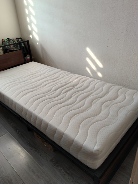 Łóżko jednoosobowe z materacem Materac ma materiał na zamek więc można łatwo wyprać i zawsze jest czyste i świeże 60euro