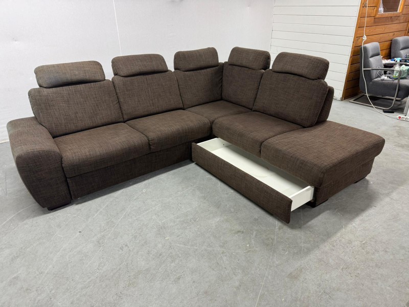 Narożnik z funkcją spania 210x260 jest używany, ale w bardzo dobrym stanie i został profesjonalnie wyprany przy użyciu maszyny do czyszczenia tapicerki, dzięki czemu wygląda jak nowy.