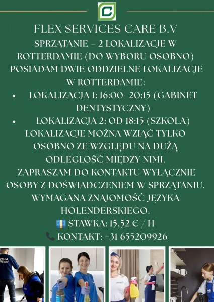 Sprzątanie – 2 lokalizacje w Rotterdamie (do wyboru osobno)