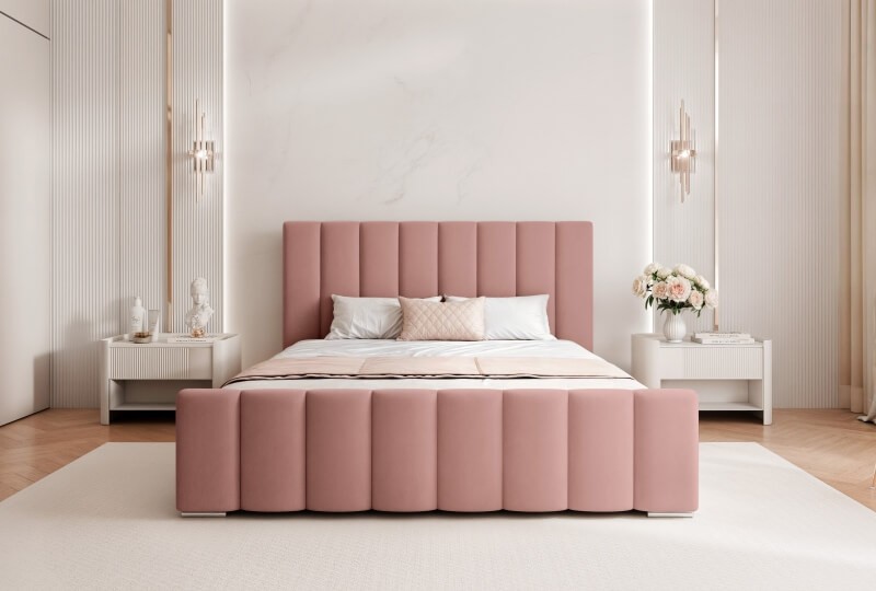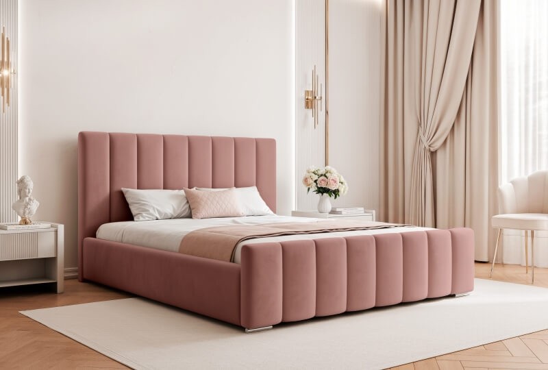 To wyjątkowa propozycja pod indywidualnie dobrany materac. Wyposażone w duży pojemnik na pościel pod całym łóżkiem i stelaż metalowy lub drewniany. Duże tapicerowane wezgłowie efektownie zaprezentuje się w każdej sypialni.
