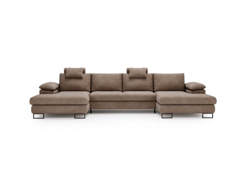 Narożnik CUBA to wyjątkowa panoramiczna kanapa, którą cechuje elegancka struktura siedziska. Luksusowa , delikatna w dotyku tkanina zachwyca swoją aksamitnością, a zarazem jest odporna na tarcie, dzięki czemu po ustawieniu tego mebla w Twoim salonie, będziesz się nim cieszyć przez długie lata. Pikowania na siedzisku, oraz oparciu dają poczucie subtelności, oraz błogiego zatapiania się, tworząc wrażenie lekkości. Aby w pełni wykorzystać miejsce w którym stoi mebel dodaliśmy funkcję spania, oraz dwa pojemniki na pościel. W dzień usiądziesz z ulubionym napojem w ręku, a wieczorem narożnik zmienisz w pełnowymiarowe łóżko. Jest to świetna opcja dla gości, oraz w kawalerkach. Wysoka jakość wykonania to priorytet w naszej firmie. Mebel wykonany jest z panki elastycznej T28 o średniej twardości, oraz sprężyn falistych, które zapewniają odporność na odkształcenia. Dla większego komfortu, oraz wygody zastosowane zostały regulowane zagłówki.