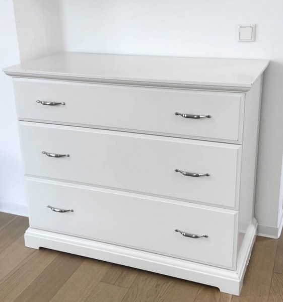 Sprzedam białą bardzo masywną komode. Komoda posiada 3- szuflady, jest pojemna.