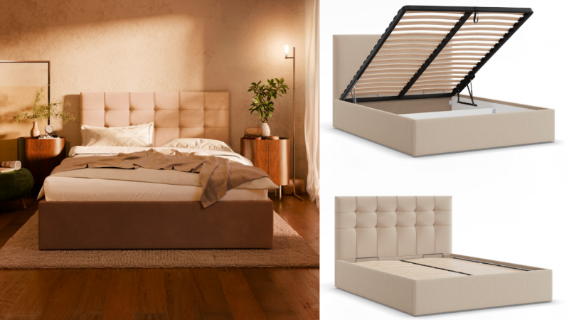 Łóżko tapicerowane SORIA to idealna propozycja dla osób, które cenią sobie nowoczesny styl oraz komfort snu. Wygodny stelaż z podnośnikiem gazowym zapewnia swobodny i bezpieczny dostęp do przestronnego pojemnika na pościel. Tapicerowany zagłówek, który mocowany jest przy pomocy śrub, zapewnia maksymalną stabilność i komfort podczas wieczornego czytania książki.