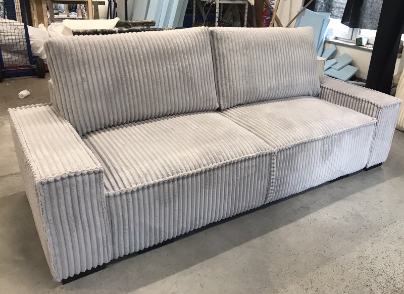 Tył mebla został również obity tkaniną dzięki czemu możesz ustawić go w dowolnym miejscu. Aby jak najdłużej zapewnić doskonałą kondycję sofy można wykończyć ją tkaniną plamoodporną i zmywalną