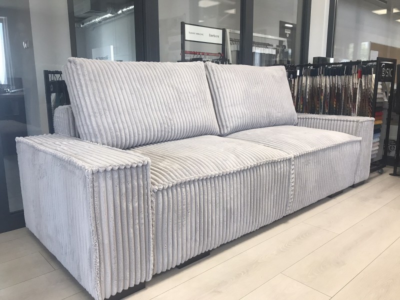 Duża wygodna sofa do salonu lub pokoju młodzieżowego. Wyposażona w funkcję spania oraz pojemnik na pościel. Dzięki temu w dzień będzie wygodną kanapą, która pomieści domowników i gości. W nocy natomiast będzie wygodnym łóżkiem.