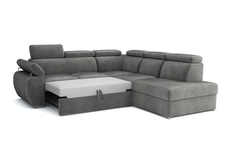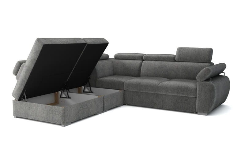 Młodzieżowy i nowoczesny narożnik z funkcją spania i dwoma pojemnikami na pościel. Wygodny, stylowy, ale przede wszystkim solidny mebel. Regulowane zagłówki i podłokietniki dopasują mebel do Twojej sylwetki Boczki stabilizujące zapewnią stabilną ekspozycję. Odpowiednio wysokie oparcie zapewni wsparcie dla całej sylwetki. Mebel może zostać wykonany zarówno w wersji prawo jak i lewostronnej.