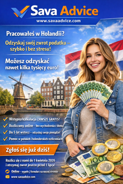 Czy wiesz, że możesz odzyskać nawet kilka tysięcy euro podatku z Holandii? Wystarczy, że złożysz zeznanie do 1 kwietnia 2026, a już przed 1 lipca otrzymasz wiadomość z Belastingdienst i swój zwrot! Nie odkładaj tego na później – im szybciej, tym lepiej dla Twojego portfela!