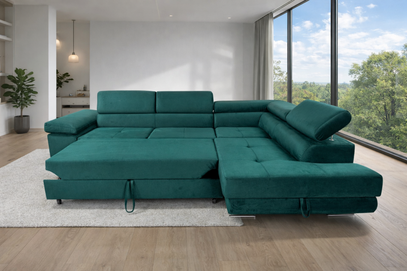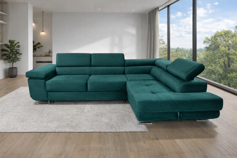 Stylowy i komfortowy narożnik z funkcją spania, idealny do każdego salonu. Połączenie nowoczesnego designu, wygody i praktycznych rozwiązań.