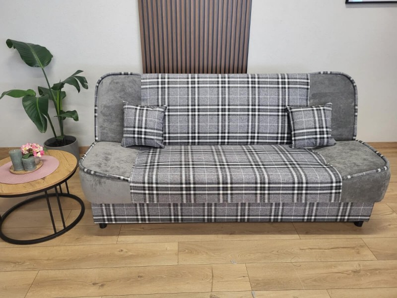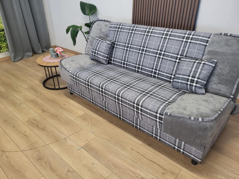 Wersalka rozkładana FILIP została wykończona miękką tkaniną w kratę.