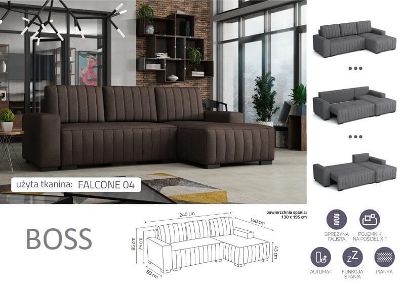 Rozkładany narożnik z funkcją spania BOSS.