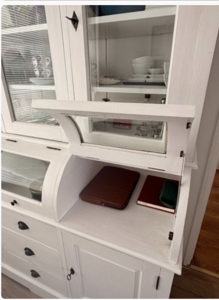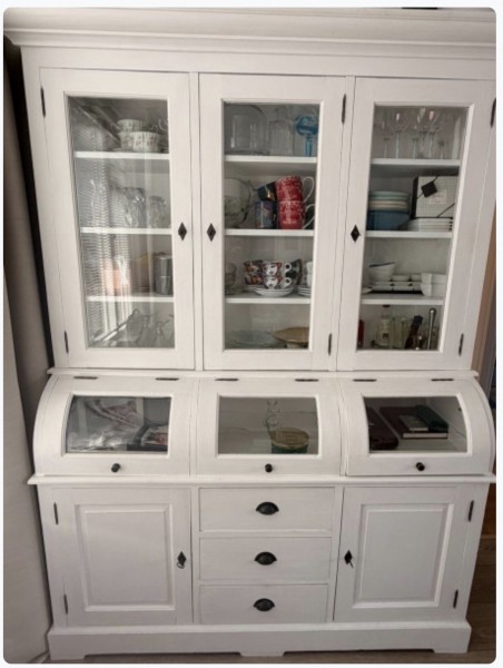 Sprzedam solidny drewniany kredens / witrynę w kolorze białym.
