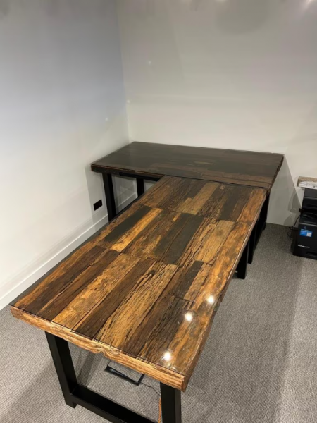 Dwa solidne i wszechstronne stoły, które doskonale nadają się do użytku jako biurko lub stół jadalniany. Dzięki dużym wymiarom idealne do pracy z domu, nauki lub wspólnego posiłku w większym gronie.