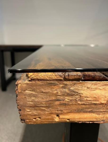Dwa masywne drewniane stoły, w tym szklana płyta na sprzedaż