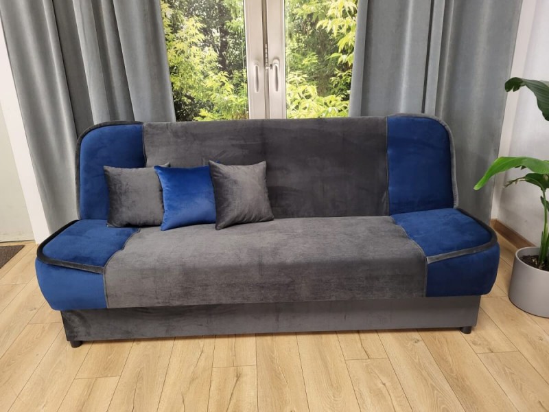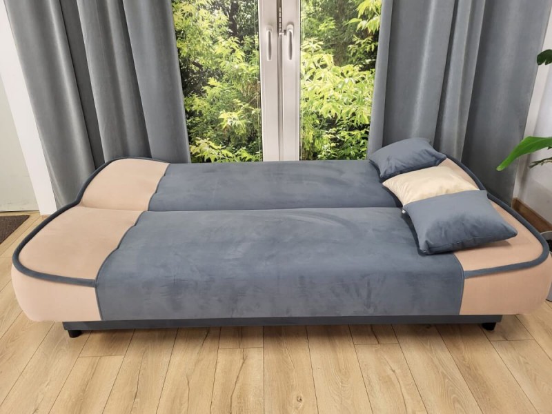 Wypełnienie siedziska sprężyną zapewni wygodne siedzenie i spanie. Pojemnik na pościel oraz funkcja spania umożliwią Ci zapewnienie gościom wygodnego odpoczynku. Modne kolory sprawią, że dopasuje się również do pokoju młodzieżowego. Dwa jaśki dołączone do zestawu dopełniają mebel.