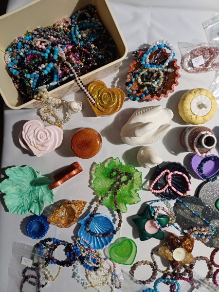 Dzień dobry, oferuję Państwu pakiety niespodzianki. Oprócz mojej pracy wykonuję bransoletki i inne produkty rękodzielnicze, takie jak odlewy z gipsu i żywicy epoksydowej. Dzisiejsza oferta obejmuje pakiet niespodziankę za 16,99 euro (cena promocyjna, która nie przekracza kosztów produkcji). Przedmioty te są ręcznie robione i mają unikatowe wzory (nigdy nie robię dwóch identycznych). Wszystko jest w 100% legalne i pochodzi z uczciwego handlu.