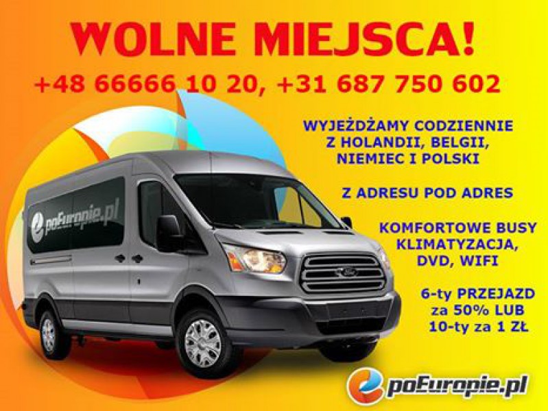 DUŻE KOMFORTOWE BUSY VIP CODZIENNIE Z ADRESU NA ADRES WOLNE MIEJSCA
