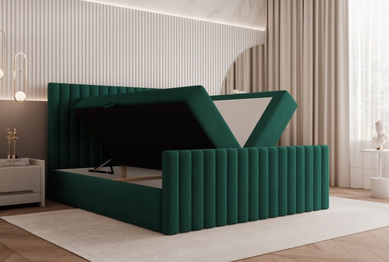 Boxspring MALTA to wyjątkowe podwójne łóżko sypialniane z 2 pojemnikami na pościel. Zamieni sypialnię w wyjątkowy i stylowy apartament. Wysokie tapicerowane pikowane wezgłowie oraz wysoki przednóżek dodają całości wyjątkowego charakteru. Dostępne w 5 rozmiarach zarówno do małej, jak i dużej sypialni.