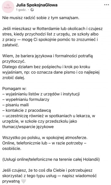 Usługi administracyjne dla Polaków w Holandii. Tłumaczenia/wsparcie językowe.