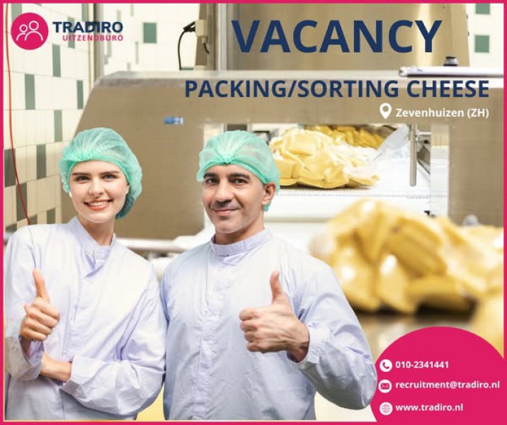 Dla firmy w Zevenhuizen (ZH) poszukujemy pracowników do sortowania, rozpakowania i pakowania sera.