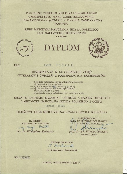 Lekcje holenderskiego dla Polaków a także polskiego dla Holendrów. € 15 za godzinę (60 min) Lekcje są przez messengera (najlepiej z rana). Także język techniczny - pracowałem w Holandii jako elektryk, kreślarz-konstruktor i informatyk. Skończyłem też na lubelskim UMCSie kurs metodyki nauczania (mam kilkadziesiąt lat praktyki). Na zdjęciu wręczanie dyplomów na UMCSie w Lublinie.