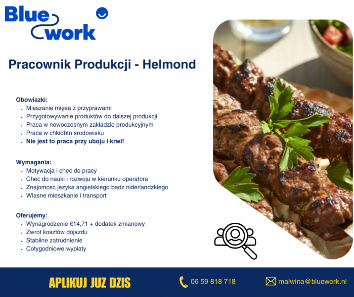 Szukamy pracownika produkcji do pracy w zakładzie w Helmond.