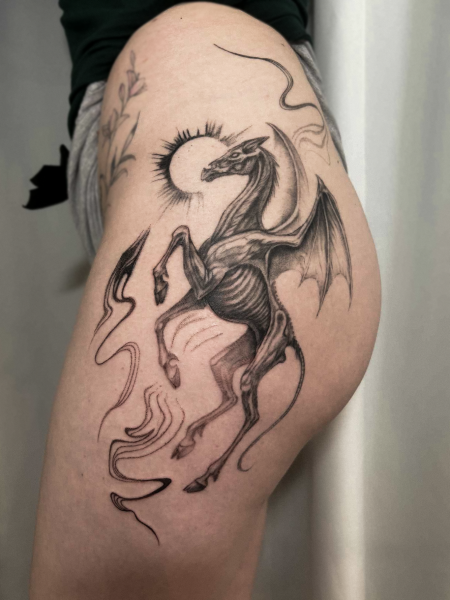 Każdy projekt tworzę indywidualnie, dopasowując kompozycję do ciała, tak żeby tatuaż wyglądał dobrze nie tylko teraz, ale i za kilka lat.