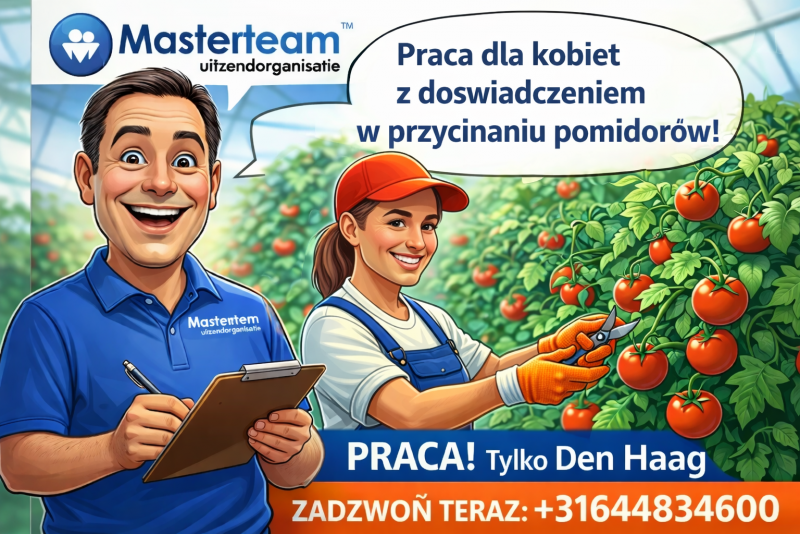 Poszukujemy Pan do pracy przy pomidorach w szklarni (snoeien – obrywanie/podcinanie pędów).