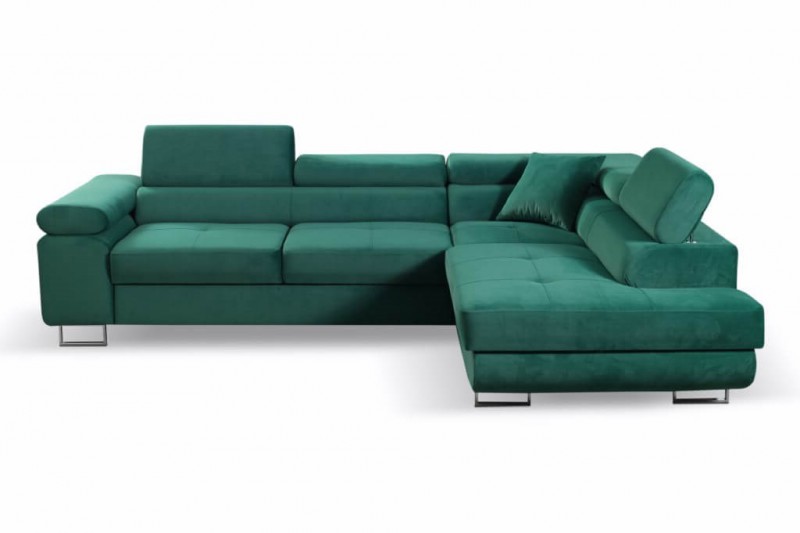 Idealny mebel do nowoczesnego salonu. Wygodny i solidnie wykonany z najwyższej jakości materiałów. Już na pierwszy rzut oka zachwyca swoją formą. Wsparty o niezbędne funkcje: pojemnik na pościel i powierzchnię spania. Dodatkowe ruchome zagłówki zapewnią wygodę podczas czytania i oglądania telewizji.