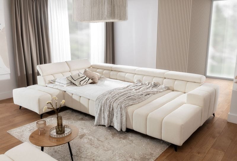 Narożnik RAGUSSO to współpraca nowoczesności z funkcjonalnością. Odznacza się nie tylko modnym wzornictwem, ale także najwyższą jakością wykonania. Wyposażony w doskonałe mechanizmy podnoszenia pojemników, dzięki którym dbamy o optymalne wykorzystanie przestrzeni w Twoim wnętrzu. Sposób zamykania jest bezpieczny i jest wspomagany mechanicznie. Ponadto, funkcja spania zapewnia komfortowy odpoczynek zarówno Tobie, jak i Twoim bliskim. Ragusso to nie tylko mebel to również element dekoracyjny, który idzie krok w krok za najnowszymi trendami. Dbamy o to, aby nasze produkty spełniały najwyższe standardy jakości, zapewniając Ci nie tylko estetykę, ale także trwałość na lata. Wybierając nasze meble, inwestujesz nie tylko w funkcjonalność, ale także w unikalny styl, który będzie odzwierciedleniem Twojej osobowości i gustu.