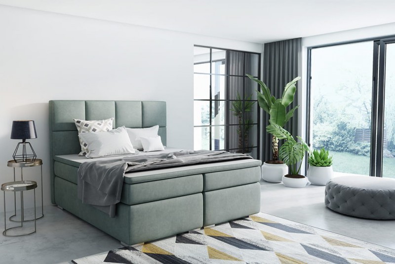 Łóżko boxspring INEZ dostępne jest w opcji 160x200cm. Wybierzesz model odpowiedni do dużej, jak i małej sypialni.