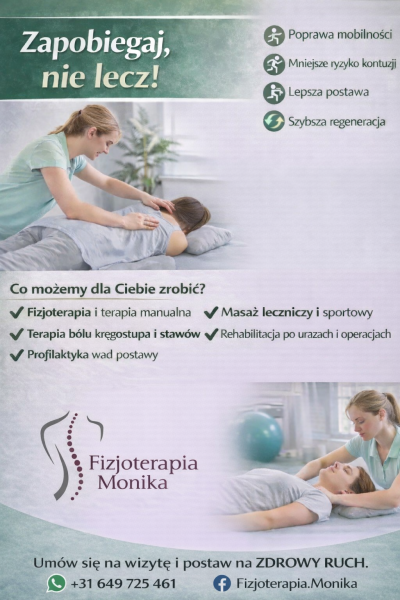 Gabinet Fizjoterapia Monika to miejsce, w którym pomagam mieszkańcom Almere i okolic w pozbyciu się: