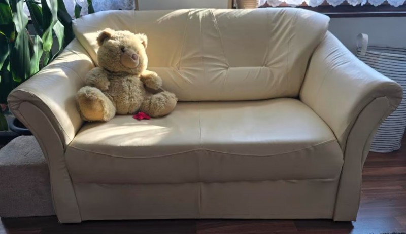 Crème bank met afmetingen 140x80x80. De bank is in goede staat en biedt comfortabele zitplaatsen. Ideaal voor een kleine woonkamer of als extra zitplaats in een grotere ruimte.