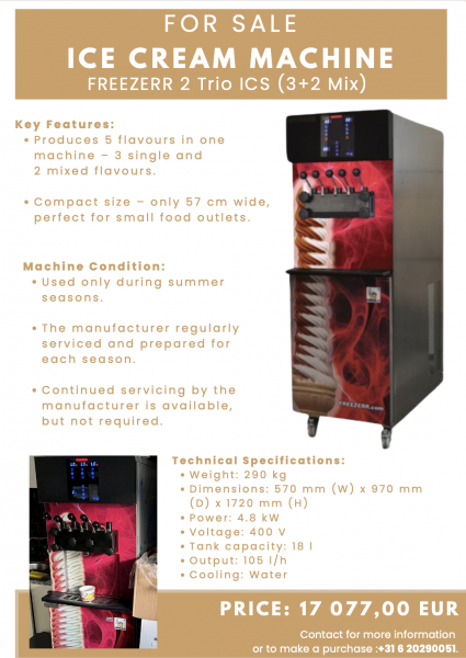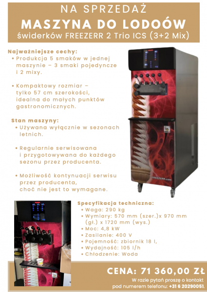 Sprzedam profesjonalną maszynę do lodów świderków FREEZERR 2 Trio ICS.