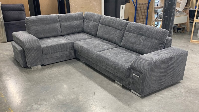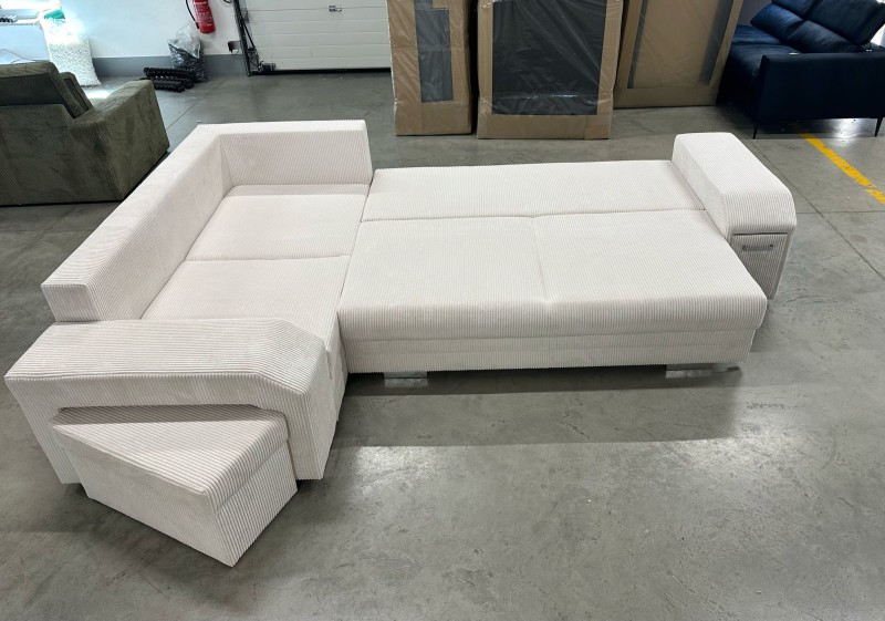 Nowoczesna luksusowa kanapa narożna z funkcją spania. Wyposażony w niezbędne funkcję i nowoczesne udogodnienia. Modny, solidny i elegancki mebel, który połączy funkcję salonu i sypialni w jednym pomieszczeniu. Wykonany przy użyciu najwyższej wysokiej jakości materiałów, gwarantujących wieloletnie użytkowanie.