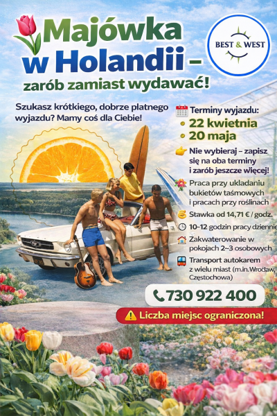 Wyjazd do pracy 22 kwietnia oraz 20 maja !